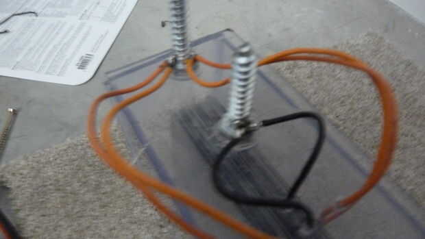 Para empezar "la tapa del aparejo" necesita perforar seis agujeros en el centro de la tapa. los agujeros deben ser el grosor de los cables de conexión de la célula. ahora perfore un agujero el espesor del tubo de goma en el otro lado. en el otro lado pegar sus tornillos, negritas como conectores de sus cables a la batería. ahora la soldadura de los cables a la celda. necesita 4 cables a los dos exteriores (2 por plato) y 2 a la placa media, son el exterior - y el interior uno es +. ahora Atornille los cables por los agujeros hacia el exterior de la célula. soldadura de ahora los cables desde el exterior de la célula a un tornillo y los cables desde el interior del tornillo al otro, ahora han amañado la tapa :-)