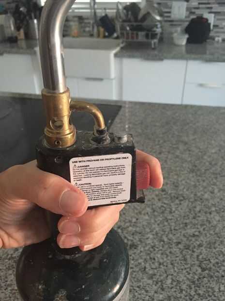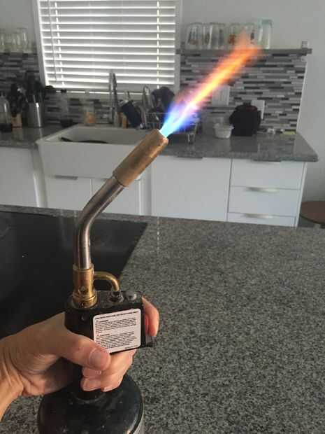 Comenzar sosteniendo la antorcha cerca de 5 pulgadas de sus alimentos. Presione el botón para obtener una llama. Onda sobre un área pequeña, manteniendo el soplete moviéndose. Moverse más cerca si la llama es demasiado pequeño y aún más lejos si las fichas comienzan a prenderse fuego y quemar.