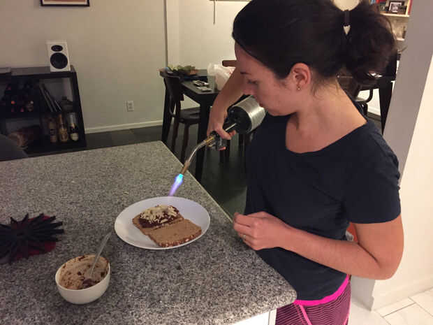 Esto también funcionó bien para derretir el queso un poco en un sándwich de albóndigas vegetarianas, que he compartido, también. Agregaré algunas imágenes adicionales como cosas de la antorcha!