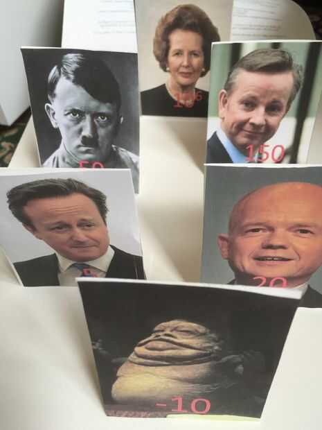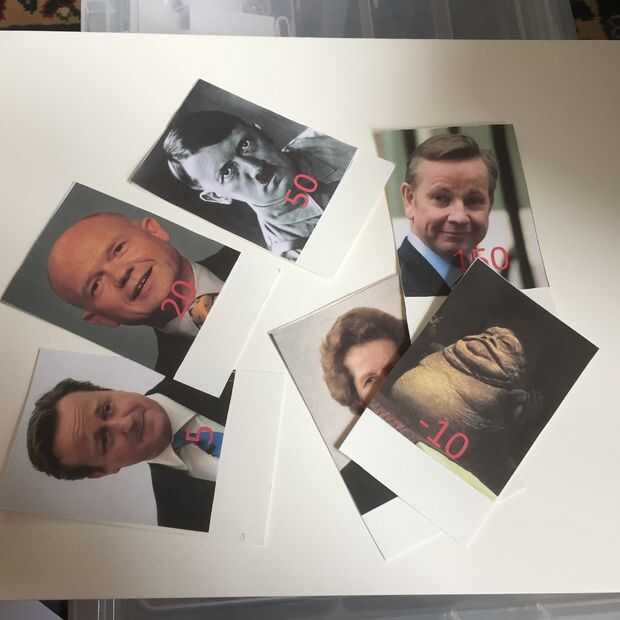 Por lo tanto será necesario algunos objetivos. He hecho algunos espectadores de pie tomando algunas fotos de gente de derecha que no me gusta mucho, les pega en a tarjeta, anotando con un cuchillo y plegándolas.