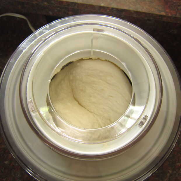 En un tazón mediano combine todos los ingredientes. Congelación de acuerdo con las instrucciones de máquina de helado. Ver, ahora no fácil as...pie... Me refiero a helado! :)