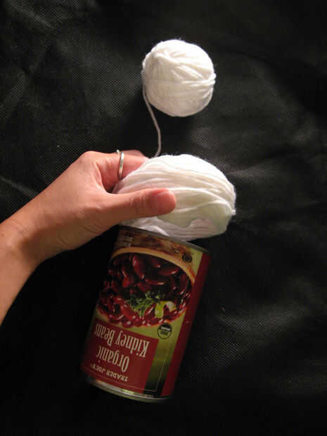 Retire el paquete de hilado de la lata y cortar el extremo.