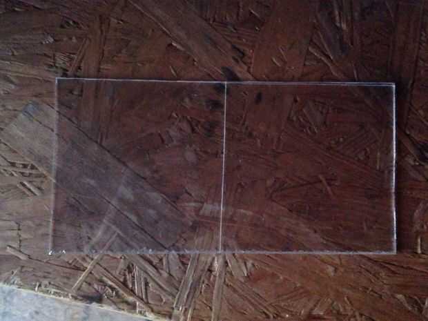 Medir el Apple TV u objeto es poner en el estante, luego marcar y cortar el acrílico. Después de yo también limpiar los bordes de corte un poco demasiado. No te olvides de marcar una línea donde se forman el acrílico.