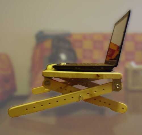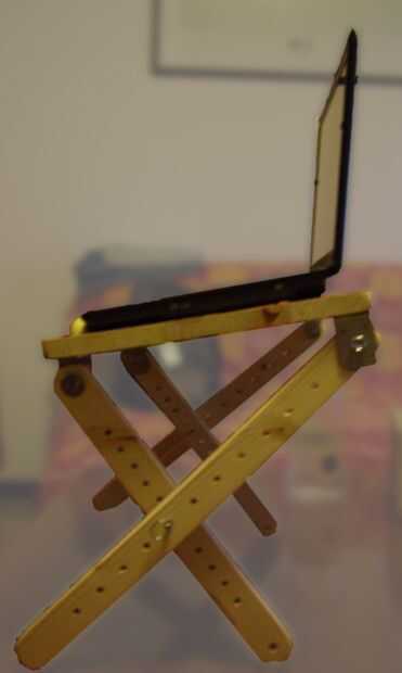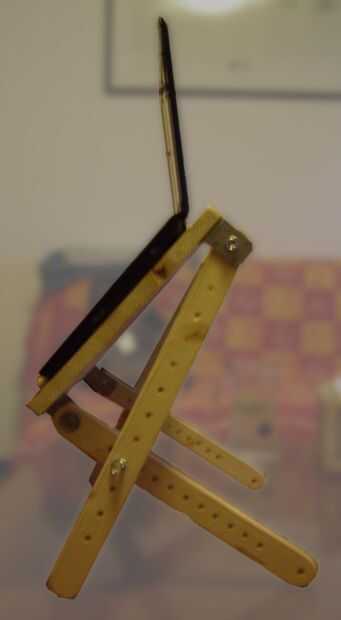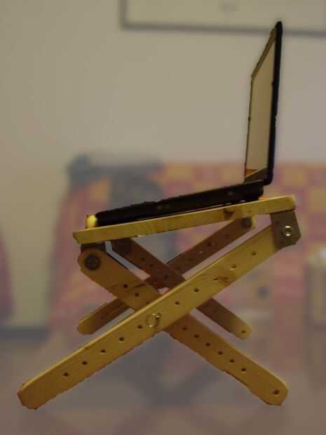 Mi lado me whanted algo robusto lo suficiente y que me permita ajustar la tabla tanto en altura y la inclinación al mismo tiempo. Así surgió este "X patas soporte del ordenador portátil".