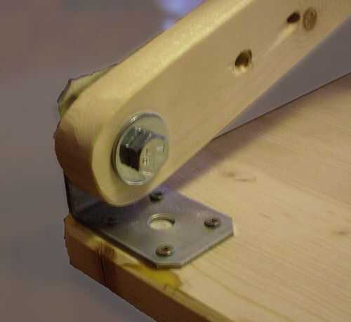 Fijación de las patas es fácil: fijar el soporte en L al tablero con 4 1, 5cm tornillos de madera (esto puede cambiar dependiendo del tipo de L braket usas), los tornillos deben ser menor que el espesor de la Junta para evitar trepassing él. Coloque la pierna en el L soporte con la tuerca de 8mm y el perno. La pierna debe ser fácil de mover arriba y abajo.