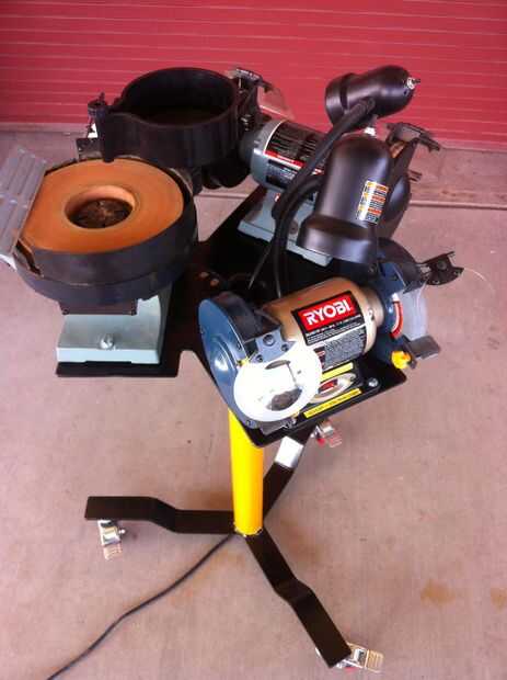Me di cuenta de que constantemente estaba barajando un par de amoladoras de banco de un sitio abierto en mi tienda, y mi agradable estación afilado fue escondida en un armario donde apenas consiguió utilizado. Pude comprar pedestales de amoladora, pero no quería dejar espacio para 3 de ellos en mi garaje.