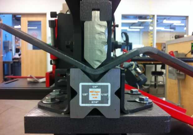 Clave para que las curvas idénticas fijaba un tope de profundidad automático en la prensa hidráulica. Esto hace que el doblador solo ir tan lejos, y rendir un ángulo constante de una curva a la siguiente.