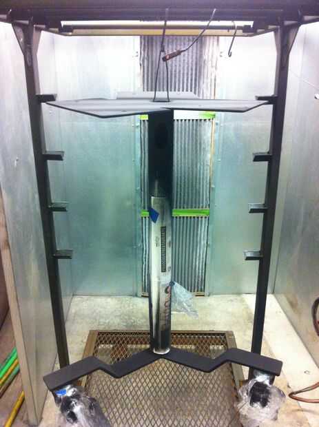Una vez montado, me decidí a capa del polvo el stand. Pero, por supuesto, no sólo de pintura en polvo - decidí que quería que la columna del centro un color diferente.