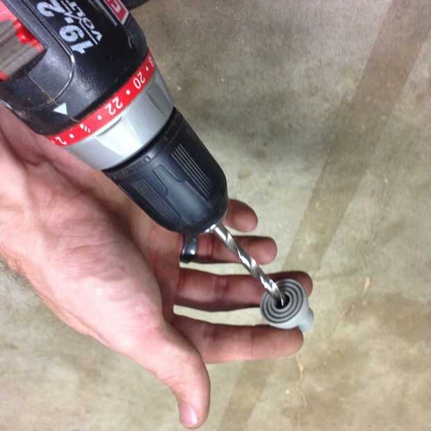 El agujero en la punta del tapón es un poco demasiado pequeño para albergar el tornillo de 1/4". Sólo utilicé una broca de taladro para agrandar el agujero un poco.