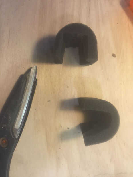 Cortar y dar forma sus pedacitos de espuma para actuar como un separador dentro de la botella. Hacemos esto para que la batería puede mantener una posición apuntalada y mantener buen contacto con los terminales. En última instancia se utilice adhesivo para fijar la espuma, pero no todavía.