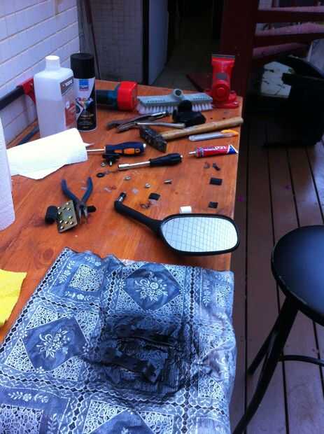 Corte ángulos para montar el soporte del espejo y pintado en negro