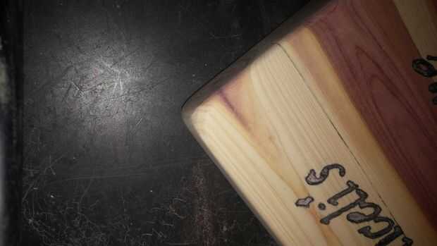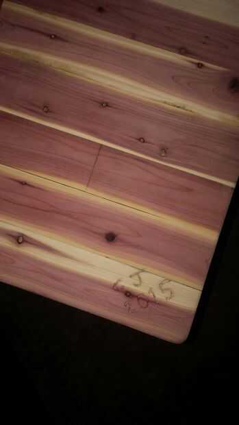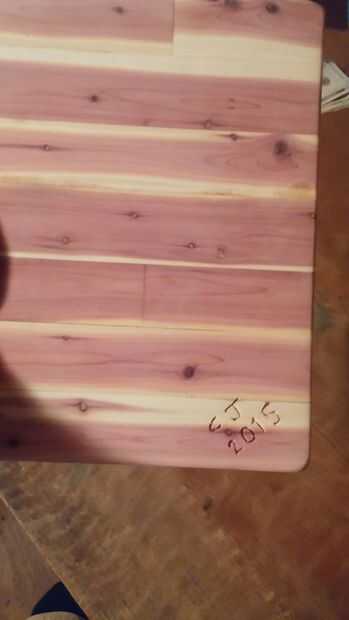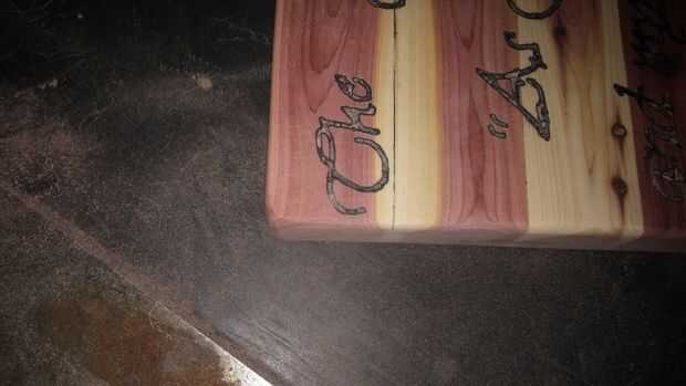 Use la lijadora de mano con una lija de 60 grano para lijar la pintura de... que cambiar a la lija de 150 grano a la arena suave al tacto... Siguió adelante y redondeado de las esquinas y los lados y poner mi nombre, así como el año...