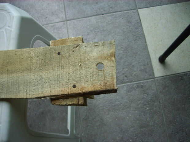 Encontrar un Instructable anterior (móvil bicicleta soporte reparación.)La sección superior se utiliza para aplicaciones de banco.Paso 1: Perforar agujero de mesa madera para caber firmemente 1.5" PVC (uso adicional bloques de madera debajo de la par