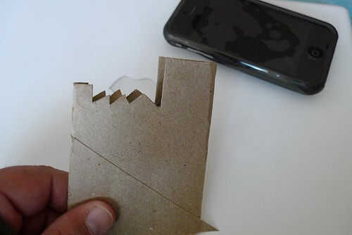 Cortamos esta manera más o menos. Un área para el soporte de iphone y muescas en una sierra para colocar el aparato con diferentes inclinaciones.