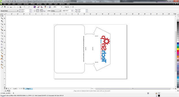 El patrón incluido que he creado está marcado con el que se dobla para hacer en qué orden, la dirección URL de mi página de Instructables y el logotipo de TechShop. Si usted quiere cambiar alguno de estos, ahora es el momento.