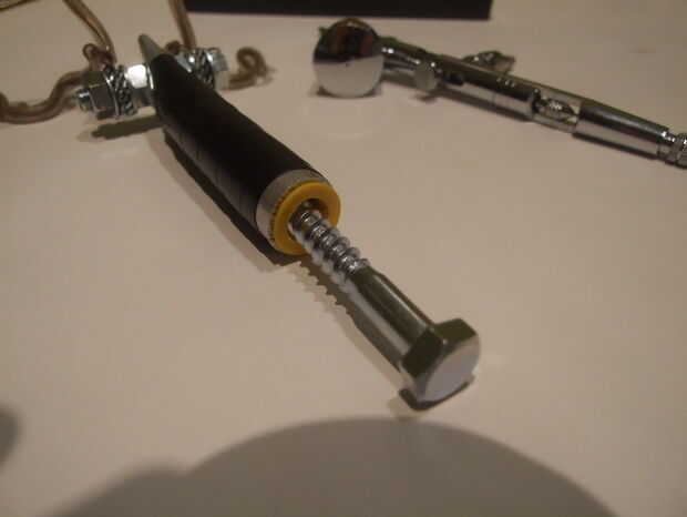necesitaba un sostenedor de aerógrafo al lado de mi cabina de aerosol improvisado. Esta fue una oportunidad perfecta para hacer algo de lo que tenía en mi garaje!! La imagen de fondo no está terminada, es una práctica que se ejecute antes de intentar