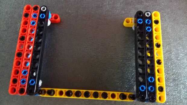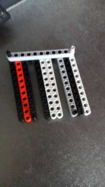 todas las piezas necesitadas:2: 2 x 6 unidades de viga plana3: 1 x 6 piezas2: 1 x 4 piezas2: 1 x 6 ladrillos4: 1 x 2 ladrillos del agujero1: 1 x 4 ladrillo4: 1 x 1 piezas inclinadas4: 1 x 1 piezas planas2: 2 x 4 barco como piezasPaso 1: Construcción