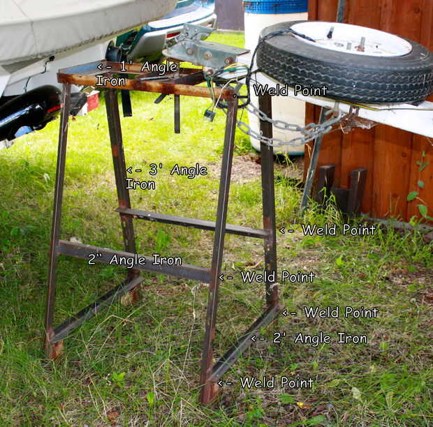 Ahora toma el resto de su hierro y abrazadera junta el bastidor base, utilizando los 3' piezas para las piernas y los 2' piezas como las piezas de refuerzo. Esto se debe construir en una configuración de pirámide como se muestra en las fotos. Esta base para el marco superior de la abrazadera y una vez que todo esté en su lugar, complete el resto de la soldadura. Una vez que se realiza la soldadura, voltee la unidad y su soporte es completo. Puede dejar sus materiales crudos, como hice yo, o les dan una pintura rápida.