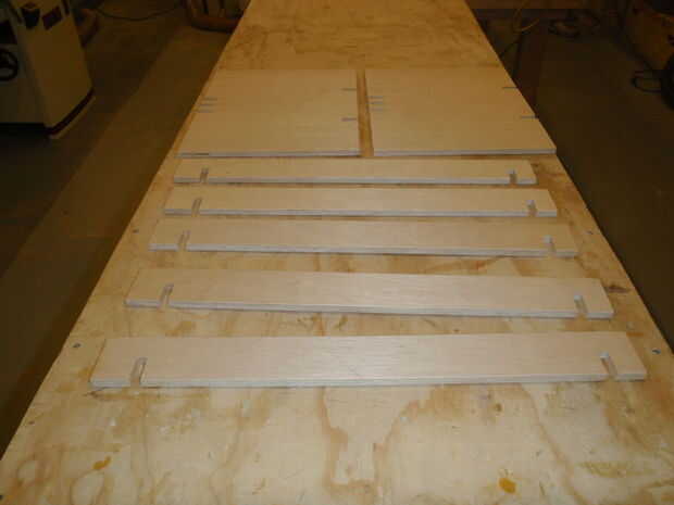 3. Fije los travesaños juntos y cortar 1 1/4" pulgadas mortajas profundas, apenas lo suficientemente amplia como para caber comodamente madera contrachapada de 1/2". Los cinco miembros cruzados deben ser idénticos.