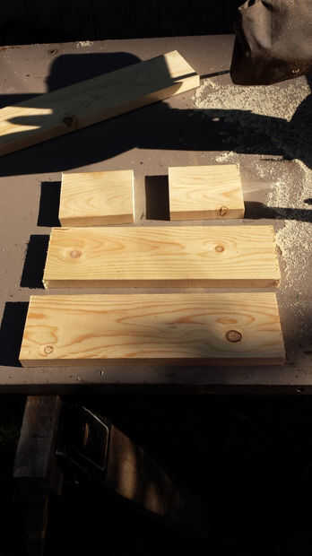 Cortar 2 tableros de 12" de largo y las sobras por la mitad (aprox 4 3/16 cada uno).
