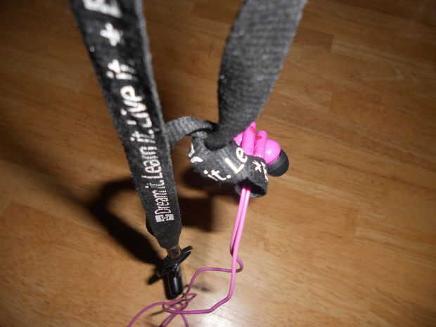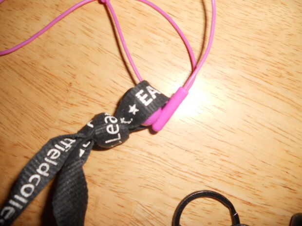 Paso 2) Tye en un nudo, asegúrese de dejar suficiente espacio para permitir que se deslice a través de los auriculares