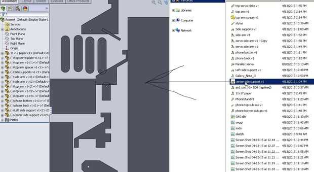 Deja para asumir que este diseño funciona y quiero que sea un dispositivo físico. Abrir una nueva Asamblea y hacer una parte que es del tamaño de una hoja de papel (en este caso, que es de 11 x 17). Luego arrastro todas las piezas individuales del explorador de windows en la Asamblea. Una vez que están todos allí, organizar y mate al papel.