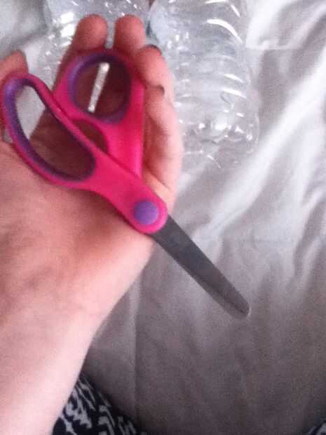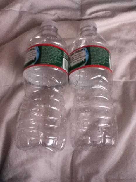 Necesitarás dos botellas de agua, un par de tijeras y cinta (yo usé cinta adhesiva)