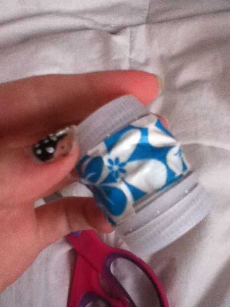 Ahora debe tener dos tapas. Llevarlos y asegúrelas con cinta adhesiva
