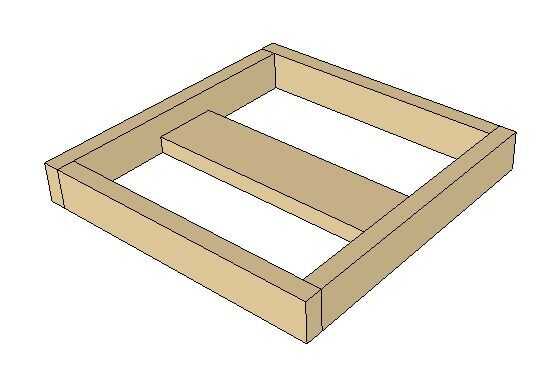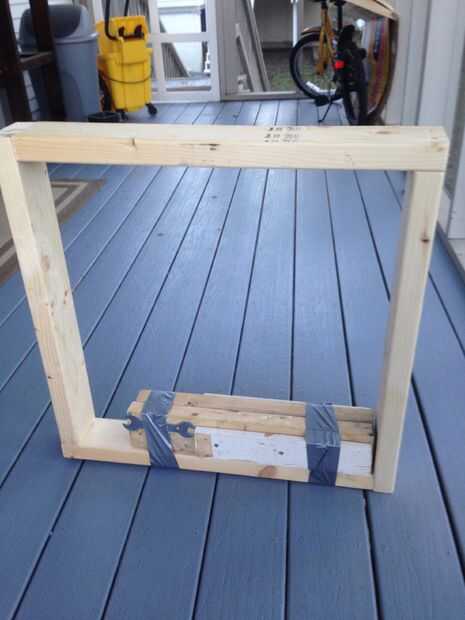 Para hacer el marco, simplemente cortar un 8' 2 x 4 4 24" longitud y atornillar en un patrón de simetría de rotación para formar un 25½" 25½" el Plaza. Cortan un 24" 2 x 6, endecha plana y centro dentro de la caja y luego enrosque. Se utilizan dos tornillos por junta.
