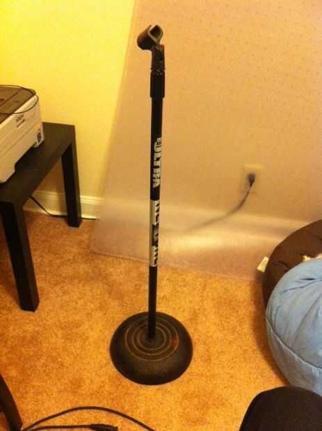 si estás aquí, significa que está tratando de construir su propio soporte de micro. La sabiduría colectiva de la internet simplemente decirle que cinta aislante el micrófono a una escoba y apoyarse contra una silla. NO ESCUCHEN A ELLOS. Hay 1 millón