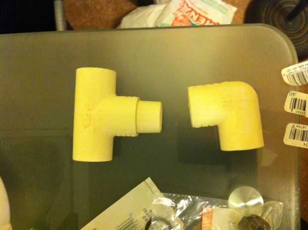 Usted necesitará probablemente el conector de 1/2 de cemento en la conexión T, porque cuando esté montado el soporte, el brazo puso un montón de esfuerzo de torsión en esta articulación, e incluso atasc el conector de 1/2" en la guarnición de T no será lo suficientemente seguro para evitar que la articulación que viene suelto (esta fue mi experiencia).