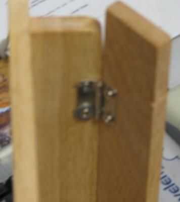 A continuación, ir a algún hardware o bricolaje tienda y conseguir una bisagra. En la foto puedes ver que es el black metal uno. Lo conseguí en una tienda llamada "wickes" por una libra (obtener dos tornillos para él)
