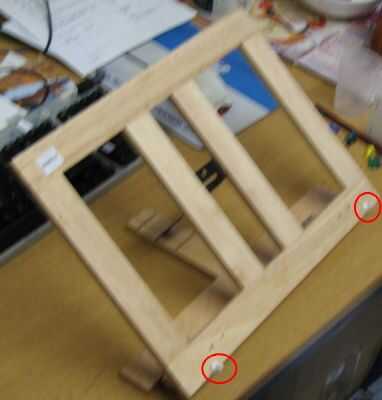 Tomar el par de pines de tablón de anuncios y poner en el fondo. Clávelos correctamente de lo contrario que su ordenador portátil se caerá. (Alternativamente, puede utilizar algunas "regla plástico/fibra de vidrio" y lo del clavo).