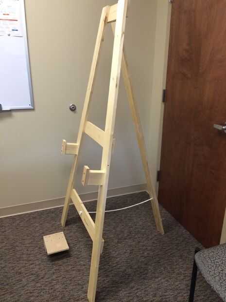 Utilice los tornillos para madera #8 x 1-1/4 para montar las patas y traviesas, suéltelas. 1 x 4 pedazo de centro deberán cortarse a 67-1/4". Las dos piernas se deben dejar en total 6' como comprar con corte en ambos extremos para formar un paralelogramo un ángulo de 10 grados. Terminarán las dos piernas en un ángulo de 10 grados cada montado - esto puede lograrse durante el montaje usando la llave superior conjunto incluso con la parte superior y el tirante de abajo tan bajo como sea posible y todavía con sus esquinas superiores alineados con los bordes de las piernas. El apoyo medio se coloca a la altura donde sus esquinas superiores se alinean con las dos piernas. Utilicé dos pernos diagonales uno al otro en cada extremo de cada soporte (hasta 4 tornillos por abrazadera)