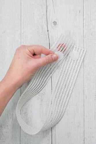 Tomar la tira larga de estera, coser el botón en un extremo aproximadamente 1 cm del borde. Pegar los puntos de velcro en la parte inferior del botón. Cerrar el caso, por lo que existen tres capas de esteras. Atar la cinta alrededor de la caja doblada para que encaje perfectamente. Marque donde conectar el otro lado del punto de velcro para la correa se siente firmemente pero no estirado.