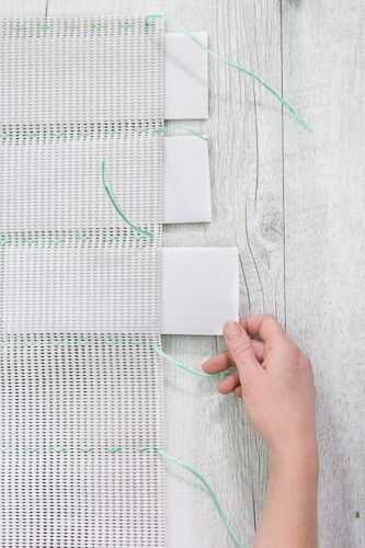 Para crear los bolsillos para insertar las piezas de corflute, 4 filas verticales se cosen aparte unos 8,5 cm. Esto crea 4 bolsillos del mismo tamaño y un bolsillo más grande (que no tiene un panel de corflute). Miden 8,5 cm en la hilera de puntadas a lo largo de uno de los lados cortos del rectángulo. Luego se mide otro 3 filas, cada 8,5 cm de separación. Prueba de corflute piezas pueden caber con el espacio suficiente a ambos lados se deslice en cuando el bolsillo se cose para arriba. Con puntada de funcionamiento otra vez en el mismo patrón (2 más, 1 bajo) Enhebre la aguja y lo del nudo, coser una línea de un lado a otro. Al llegar al otro lado, deje una cola de 10-12cm. Cuando terminado de insertar los paneles de corflute.