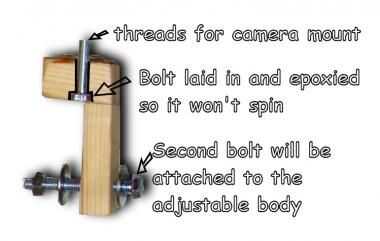 La primera cosa a hacer es encontrar un tornillo con rosca que empareja su cámara. Cuando corta 2 trozos pequeños de madera donde la primera parte es una parte más pequeña que se puede montar la cámara y el segundo Instale la montura en la cámara.