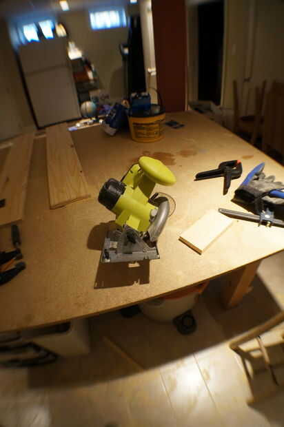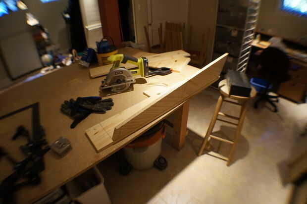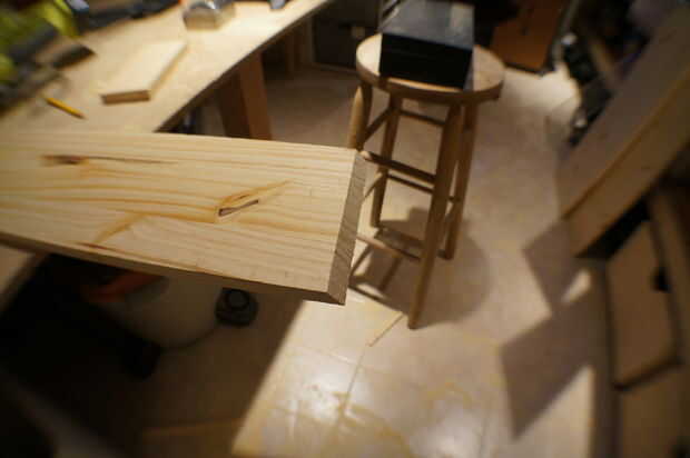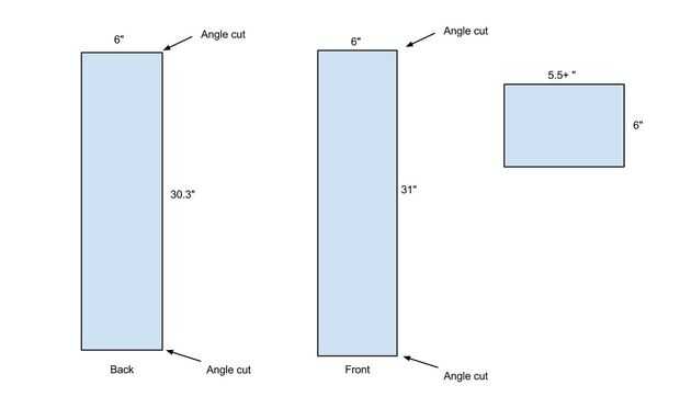 Vamos a hacer primero el tablero frontal. Ajuste la sierra circular a 15 grados y corte el borde inferior de la parte delantera. A continuación, la Junta alrededor de la vuelta y otro ángulo de corte. Esto es donde se pone un poco duro. Usted quiere asegurarse de que usted corte el segundo ángulo correctamente. Puede soportar el tablero junto al lado y ver que forma el ángulo de corte. Trabajado mejor para mí. La puedes probar y recuerde que usted está haciendo una trapezoidal con la parte inferior y la parte superior paralelo. Cualquier forma de hacerlo, asegúrese que el interior de la Junta (el interior de la placa frontal) 31" desde dentro el ángulo interior del ángulo.