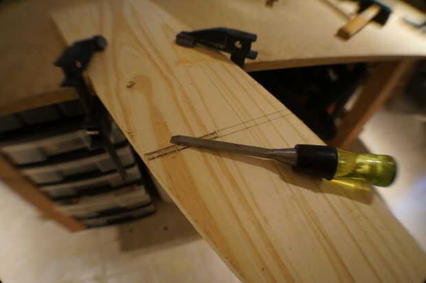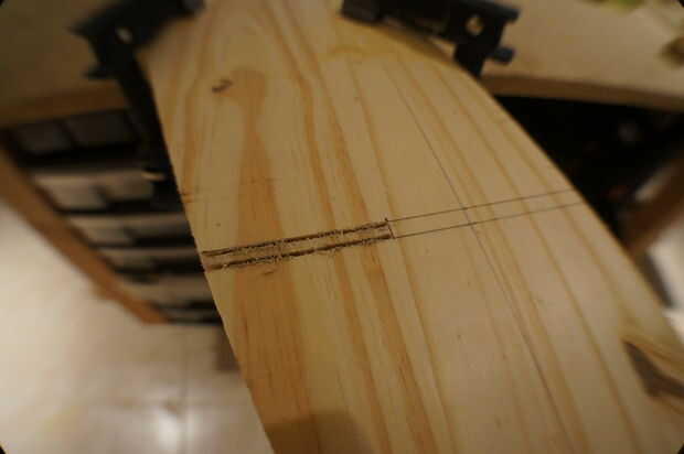 Y por último, usted necesita cortar las muescas en los lados. Nos un jig Sierra para cortar las ranuras (Asegúrese de recordar a corte en el interior de la línea) o puede utilizar una dremel con una herramienta de router (otra vez, dentro de la línea).