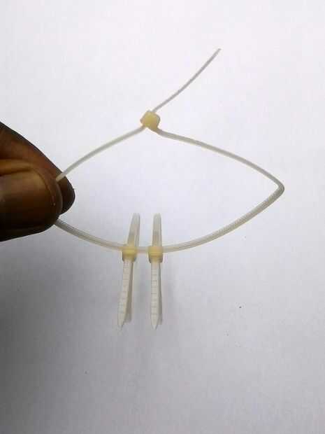• Cada uno de los dos primeros anillos de poner a la izquierda y derecha del anillo doblado luego bloquearla atando el anillo doblado a cada lado con otros lazos zip.