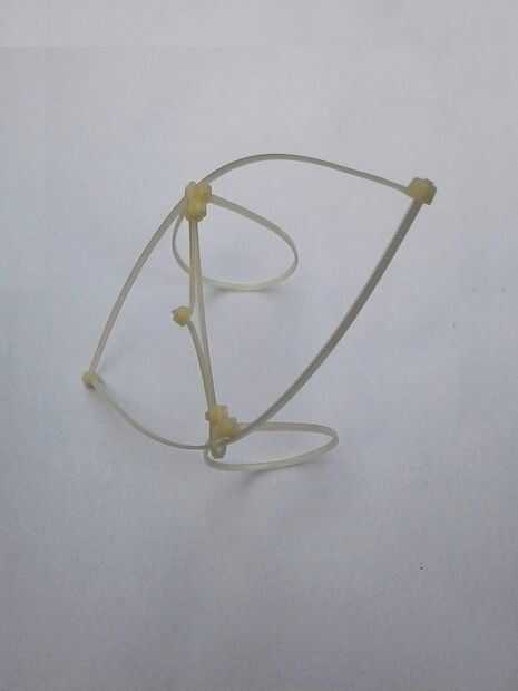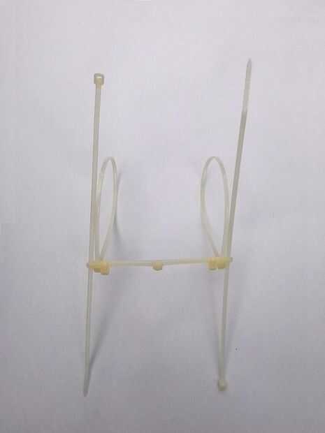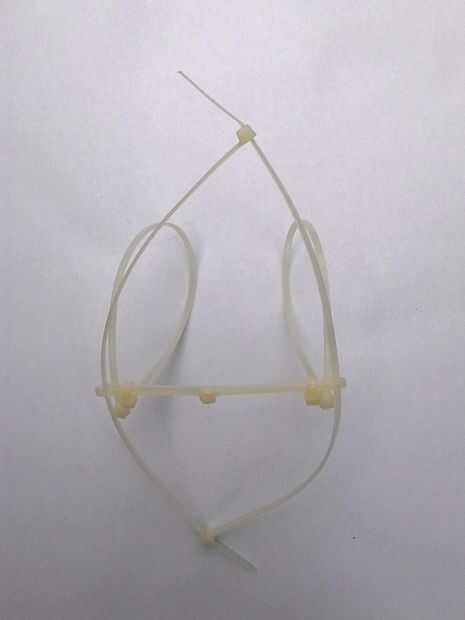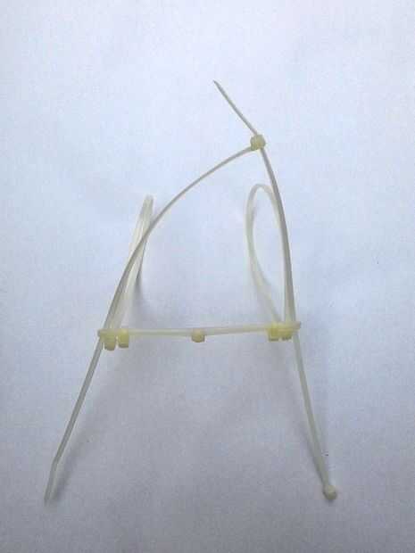 • Tomar las dos abrazaderas de plástico y lugar cada zip empate en la parte de anillo doblado con posición opuesta, uno tiene la cabeza en la parte superior y el otro tiene la cola en la parte superior.
