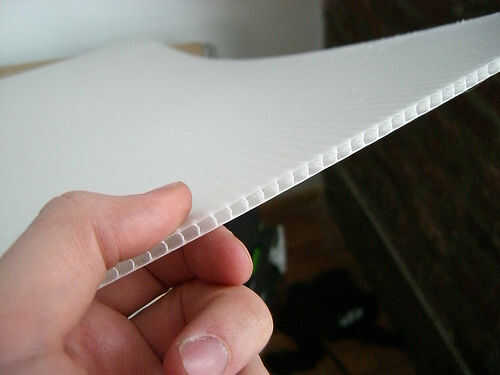 PT ha mencionado las virtudes de los plásticos de Canal en el Blog de hacer varias veces. Conozco este lugar desde cuando estaba en la escuela de arte. Recogí un pedazo grande de plástico translúcido corrogated mientras estaba allí. Usé un cuchillo xacto para cortado a la medida.