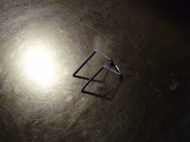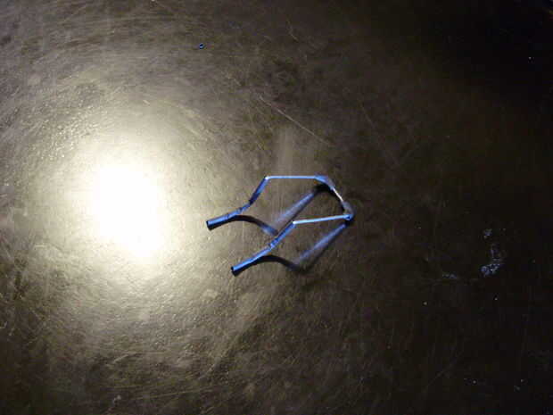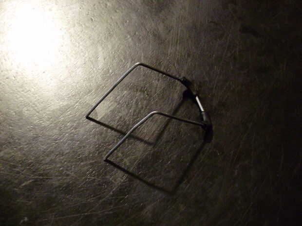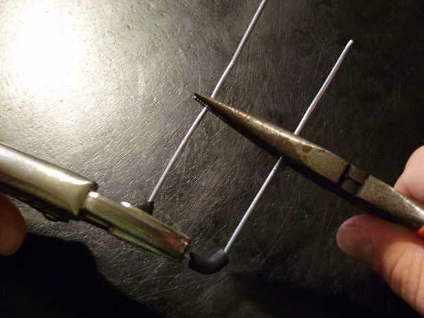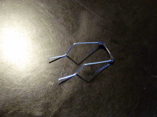 Comience usando sus alicates para doblar cada brazo de la pinza en el punto fueron que fueron previamente dobladas. Si usted tiene problemas para encontrar este punto también puede hacer la curva en aproximadamente 2 pulgadas de 90 grados doblar en cada esquina. Curva cada brazo a 90 grados (como se ve en la figura 2) tenga en cuenta que usted puede necesitar hacer ajustes más tarde.