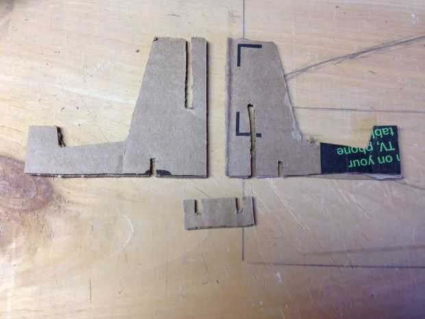 En este paso usted cortará las piezas para su stand de teléfono. El diseño es una construcción de ranura simple, por lo que cortar las muescas en la parte superior e inferior de las piezas. Realmente yo no puedo explicar así que basta con ver las fotos Además, no sé qué tamaño es su teléfono usted puede eyeball