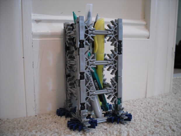 sección de tubo de 1"+ imanes de neodimio + llamas pistola azul = un portalápices impresionante.Yo solía hacerlos "en carpeta" portalápices de cartón de papel usado toalla rollos. Ahora que mi hijo está entrando en 3 º grado pensé que me ma
