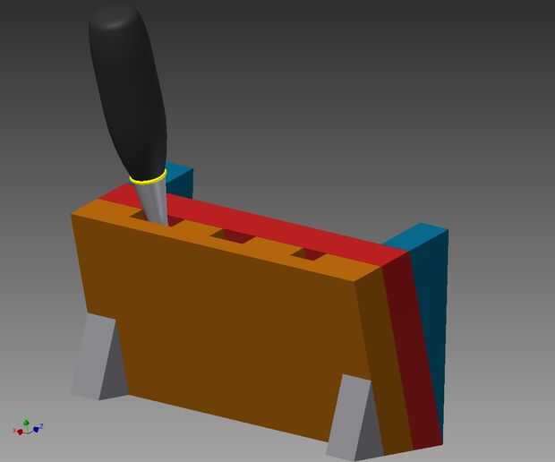 Como se ha dicho antes, tengo tres cinceles nuevos que estoy construyendo este soporte para. Hay muchas opciones de cómo hacerlo y cómo diseñarlo. He elegido para cortar ranuras paradas en una sola pieza de madera, creación de las ranuras de en que los cinceles se almacenarán. Y simplemente otro pedazo de madera para actúe como un. Después de eso, tengo dos opciones: almacenamiento de escritorio, o almacenaje de la pared. Ya que tengo un tablero de clavija de una pared de mi mesa de trabajo (y va a actualizar mi banco de trabajo), yo quería ser capaz de colgar esto en el tablero de clavija. Usted puede hacer fácilmente unas patas que los guarde en una superficie plana, así. Teniendo en cuenta que esto va en el tablero de clavija, preferiría que no se apoye contra la pared - podría tener problemas para conseguir los cinceles, dependiendo el espacio y donde ponerlo. Para ayudar a esto, corte la parte inferior del soporte de unos 15 grados, para poder tener este ángulo hacia el exterior de la pared. Las "patas" tendrán que cortar la misma cantidad para contrarrestar esto.