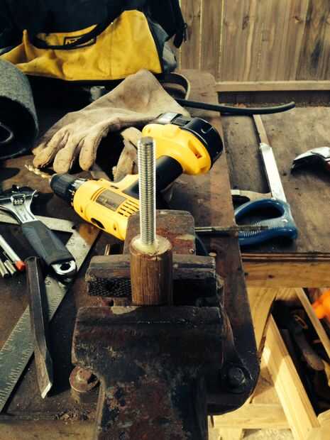 utilicé un viejo mango de hacha tenía colocación alrededor de la manija. Taladré un agujero en el mango y había aprovechado el agujero para que no deslice la varilla. Puse cola para madera en el orificio para evitar que la varilla roscada atornillar hacia fuera estaba apretando la barra para mantener el cincel en posición. Ahora dejamos la madera pegamento seco durante la noche. Atornille la parte de soporte de cincel en la varilla roscada con el mango entonces tienes un titular elegido.