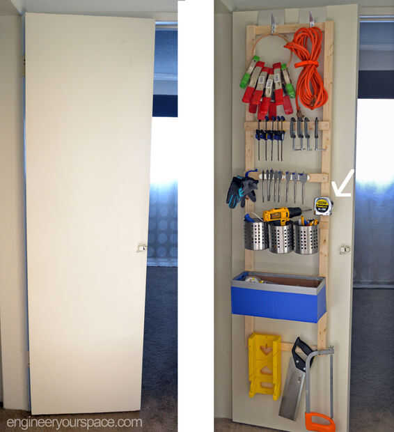 Me encanta mi organizador de puerta y tener un lugar dedicado para mi cinta métrica! Puedes ver cómo hice mi organizador de puerta simple y transforma un armario de la pequeña capa de un armario de almacenamiento mini-workshop/herramienta en este video aquí: http://youtu.be/TSWRCGrLn3E