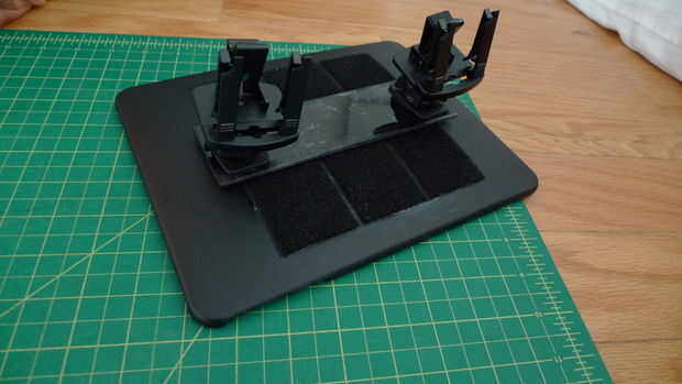 ahora, muchos músicos usan iPads como tablas de hojas letra/acordes.  Comercial, como el iKlip, puede costo $30 y arriba.  Hice este otro para $5.Quiero darle crédito a replayerreb cuyo soporte de iPad para usar mientras que carpa camping fue la insp