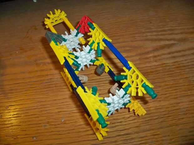 piezas necesitas:13 conectores amarillos,3 conectores rojo,3 conectores gris,3 conectores verdes,2 conectores blanco,24 barras blancas,20 barras verdes,2 barras grises.Paso 1: Paso 1 Conectores amarillos 5 y 4 barras de verde y ponerlos juntos en una